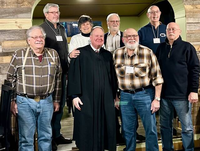 At the February meeting of the Mountain Top Historical Society held at the Ice House Pub in Mountain Top, Luzerne County Judge Richard Hughes presided over the installation of officers and newly appointed trustees. Judge Hughes has been a longtime member of the MTHS.