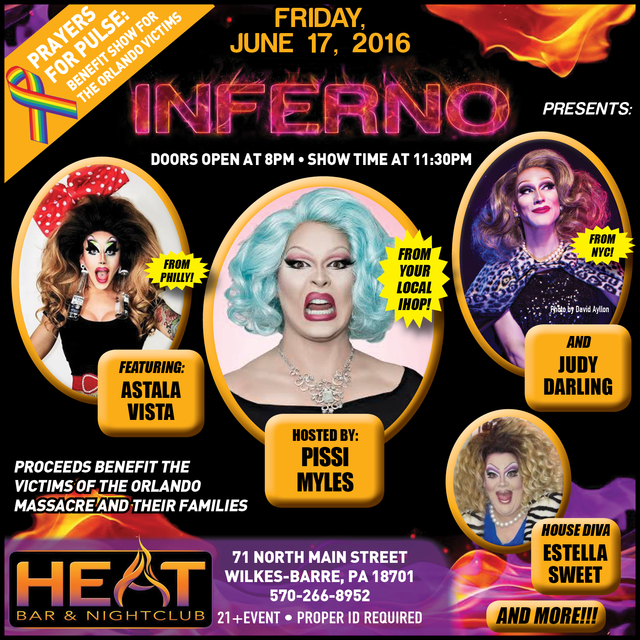 WILKES-BARRE — Heat Bar & Nightclub, 71 North Main St., will hold a benefit at 11:30 p.m. June 17 for the victims of the mass shooting at Pulse Nightclub in Orlando, Florida.