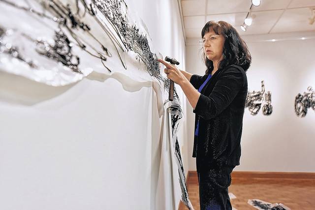 Visitors to Luzerne County Community College’s Schulman Gallery will be able to see shapes Andrews has drawn with silicone in an exhibit titled “Heavy Construction/Delicate Destruction,” which will be on display through Sept. 15.