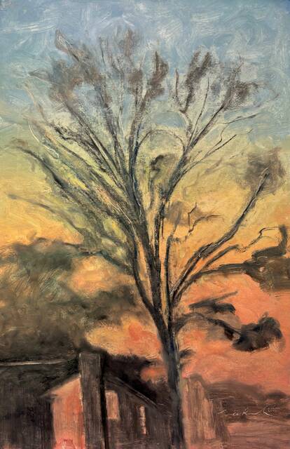 Working across oil, charcoal, and pastel, the artist builds surfaces that invite viewers into a contemplative experience of the landscape as both physical and emotional terrain.