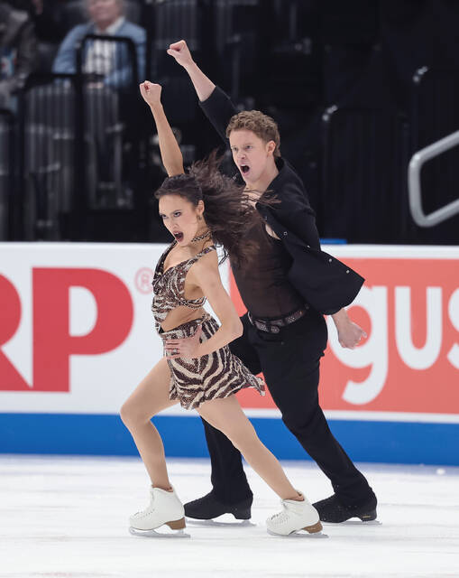 Madison Chock and Evan Bates perform during the 2026 U.S. Figure Skating Championships in St. Louis, Missouri.