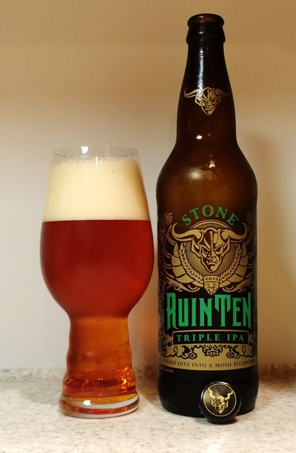The Final Word: Stone Brewing Co. originally brewed RuinTen in 2012 to celebrate the 10th anniversary of their fantastic Ruination IPA. The idea was to brew an even bigger version of the beefed up DIPA and the results were astounding, the feedback was strong and the public demanded more. So ever since this hop bomb was made available yearly. This year undergoing a name change to RuinTen Triple IPA, but it’s still the same recipe and the name is instead meant to let drinkers know that this is much hoppier than a standard DIPA. Stone Brewing Co. is most definitely a brewery that knows how to brew amazing IPAs and if you have not had RuinTen yet but love IPAs this is an absolute must try beer, but get them now before they are gone!