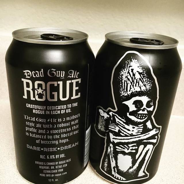 Description: Rogue Dead Guy Ale pours a golden deep copper hue with off white head that leaves a slight lacing on the glass. The aroma is malt forward with a subtle sweetness of honey and caramel notes with a backing of subtle earthy and citrus hops. The taste follows the nose and is malt forward with bready malts possessing notes of honey and caramel with a mild hop bite leaning more toward the earthy and spicy end of the hop spectrum.